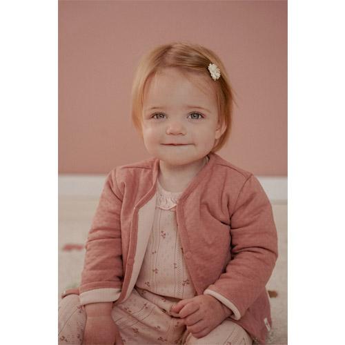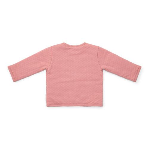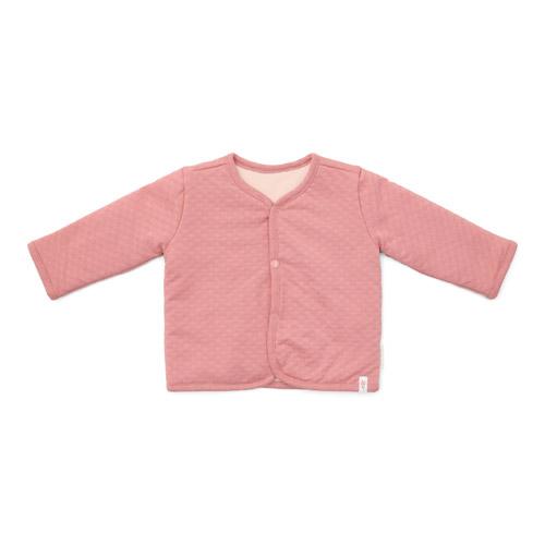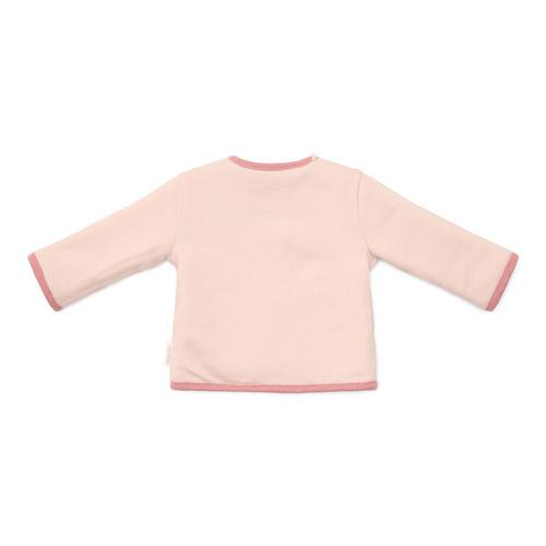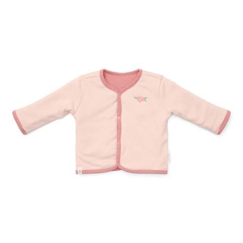 The soft jacket has a beautiful Fairy Garden print on one side and a solid Pink Blush color on the other.