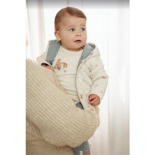 Crafted with the convenience of snap button closure, using gentle organic cotton, and lightly padded for extra warmth, this reversible jacket ensures both warmth and comfort for your newborn.
