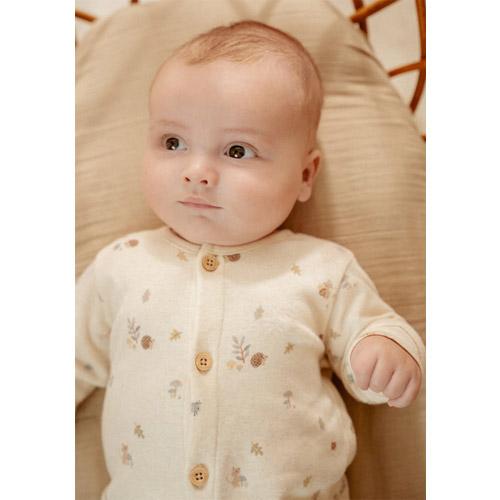 For easy dressing and diaper changes, it features a full front opening with snap buttons down the centre and at the crotch.