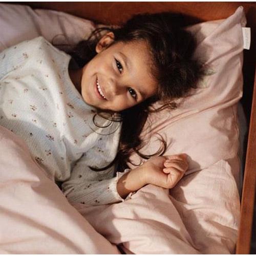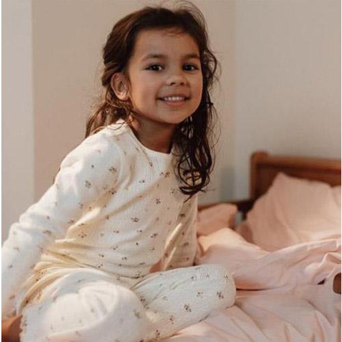 The two-piece pyjamas match perfectly with the bedding with the same flower print.