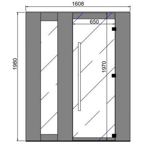 - Bright door made of safety glass 1970 x 650 x 8 mm with lacquered hardware to match the MDF colour.