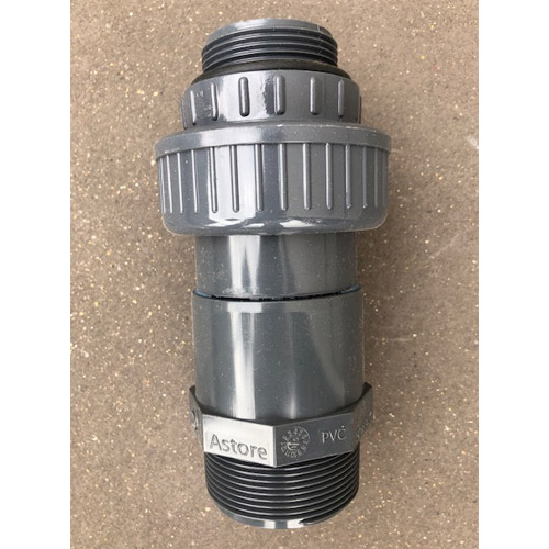 The 1 1/2" thread is screwed into the SunSpring heat pump and the 38 mm pipe from your pool is screwed onto the other end, the 2" male thread.