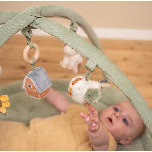 The chicken, cow, sheep, flower and barn help little ones develop sensory skills and stimulate hand and eye coordination.