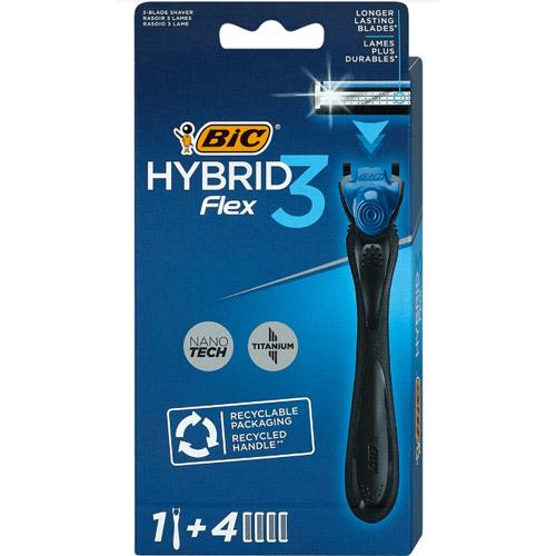 BIC Hybrid flex 3 razor, holder with four razor blades