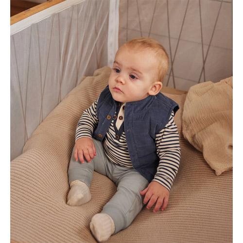 This dark blue Dirkje bodywarmer for boys adds a cool to winter outfits.