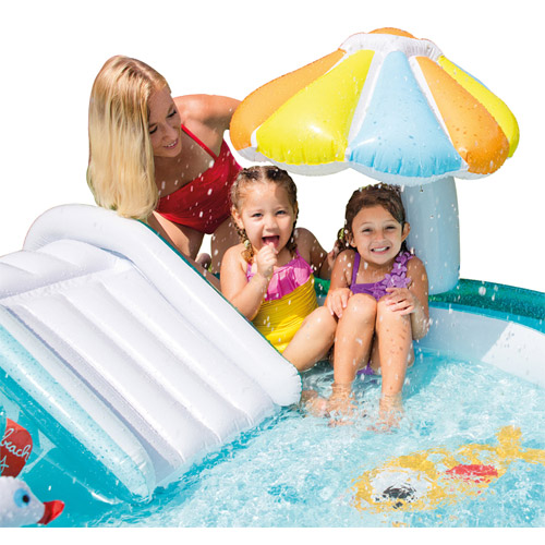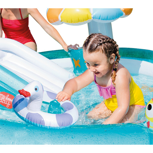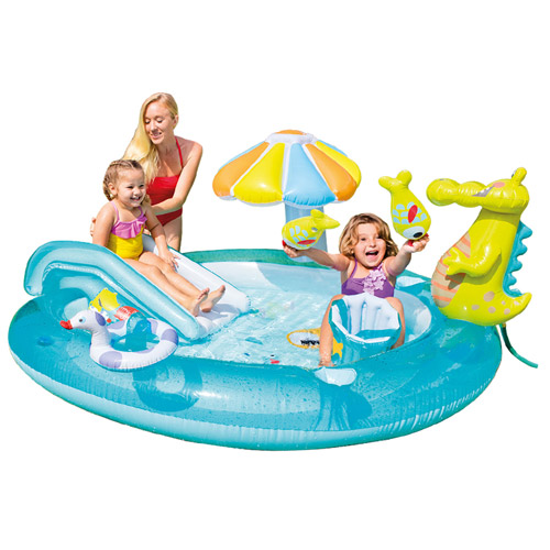 Nice pool for small children to refresh in the sultry summer days is this Crocodile play centre pool by Intex.
