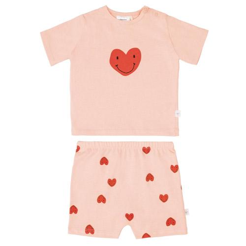 Pajama Lässig set with short sleeves Gots Heart peach rose