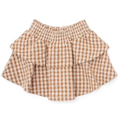 This cute skirt features a pretty brown and white check pattern and is made from a ribbed texture.