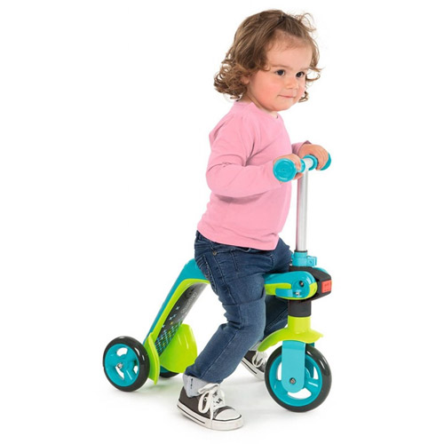 Go out and explore your surroundings with the Smoby 2 in 1 scooter and balance bike in green/turquoise.