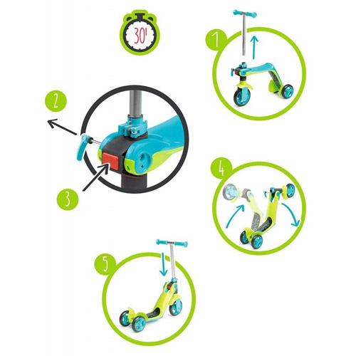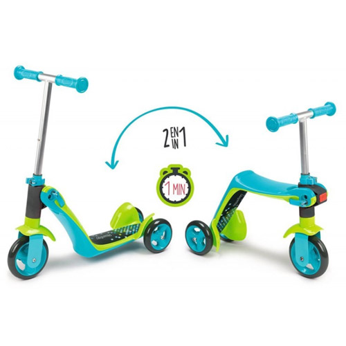 With this Smoby scooter, you have 2 vehicles in 1 You can choose one day to go out with the balance bike / scooter and the other day you change the balance bike within a minute (without the use of tools) to a scooter.