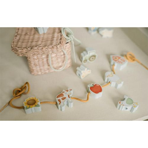 This set of stringing beads comes with one lace and wooden beads with the beautiful illustrations from the Little Farm collection.