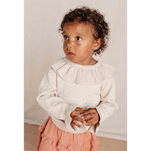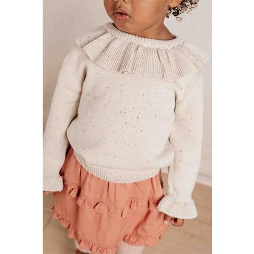 The ruffle around the neckline and the elastic sleeve ends add a playful twist.