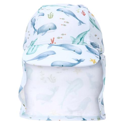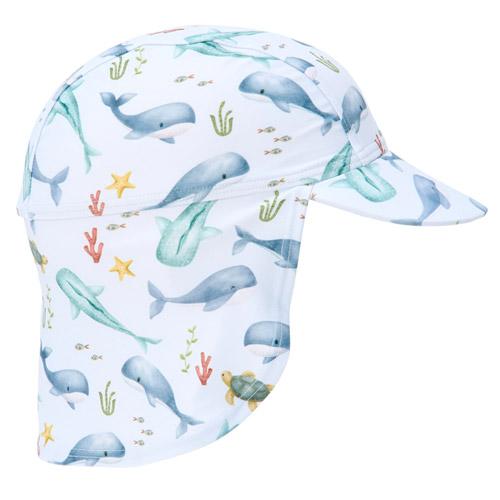 Whether splashing in the pool or building sandcastles at the beach, your little one will stay protected and stylish in the Ocean Sea Life design, featuring adorable whales swimming through light blue waters.