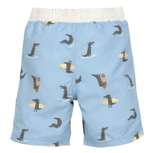 These blue UV swim shorts for children with UV protection rating 80 ensure a comfortable fit and fun bathing thanks to the integrated swim diaper, wide waistband, and seamless interior.