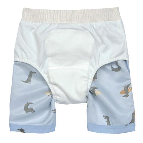 - Quick-drying UV protection swim shorts with integrated swim diaper.