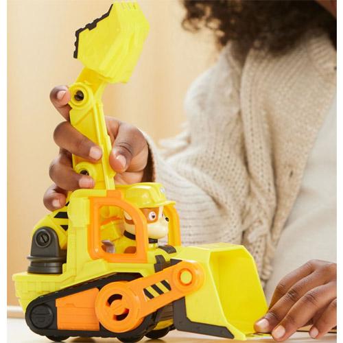 Rubble has double the fun in his brand-new construction vehicle, the Rubble & Crew bulldozer.
