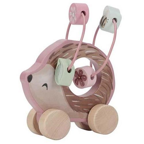 And a rolling hedgehog, with a leaf, a bee and flowers on its back that can move along the spiral.
