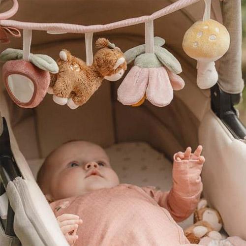 Discover the four cute toys from the Fairy Garden collection on this pram toy.