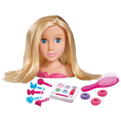 The hairdresser is made of sturdy plastic and beautifully finished with real eyelashes and a pink bustier.