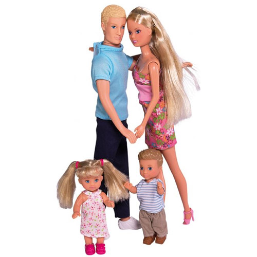 Dimensions of the dolls: Steffi 29 cm, Kevin 30 cm, Evi 12 cm and Timmy 12 cm.