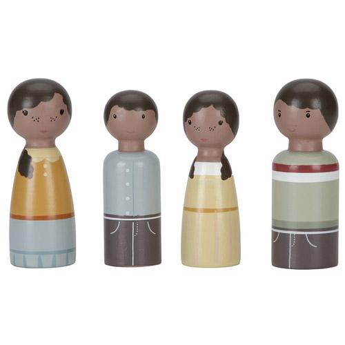 This family is a set of wooden peg dolls, consisting of a father, mother, son and daughter.