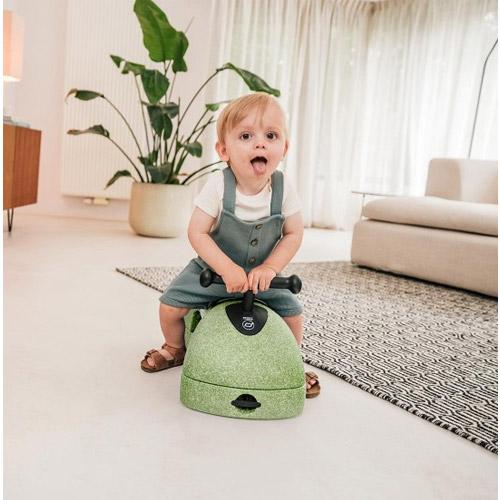 Dan transformeer je hem eenvoudig naar loopwagen door de bodemplaat te draaien.