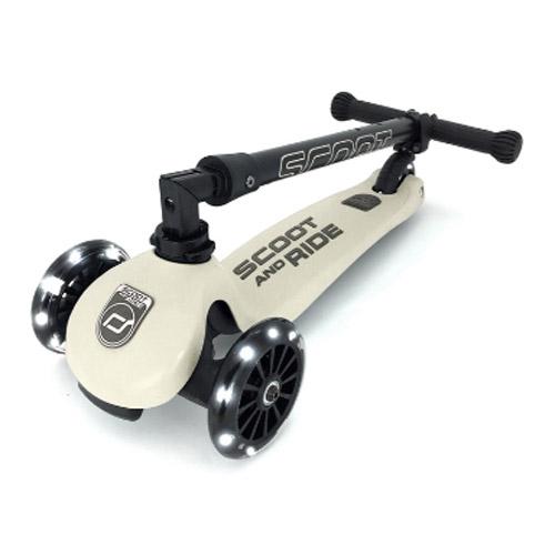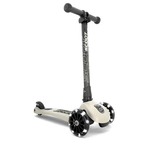 This luxurious, lightweight scooter is equipped with LED lights in the wheels.