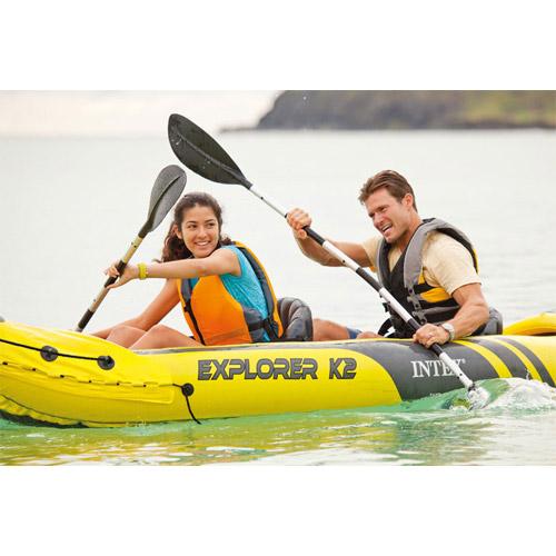 The sturdy inflatable Intex Explorer K2 rowing boat is perfect for sea, river, and lake use.