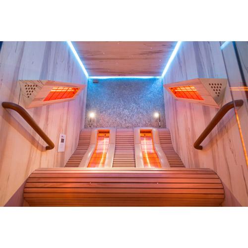 - Chauffages à quartz dans la paroi avant, radiateurs à quartz de forme ergonomique pour l'arrière, chauffage par le sol.