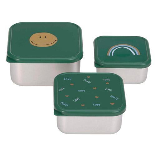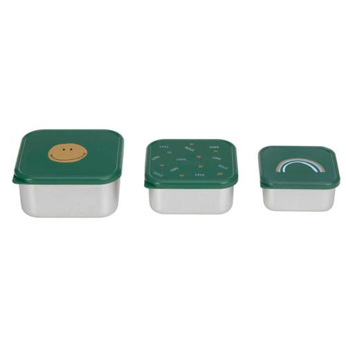 Boîtes à snacks en acier inoxydable Lässig Happy Rascals Smile vert lot de 3