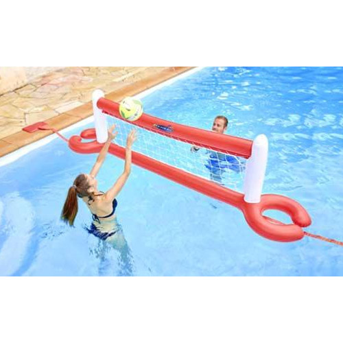 Idéal pour les jeux de ballon en toute genre, grâce à votre filet gonflable transformez votre piscine en terrain de volley bal .