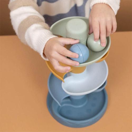 La tour en spirale est livrée avec 3 boules légères et faciles à saisir de différentes couleurs qui émettent un bruit lorsqu'elles sont déplacées.