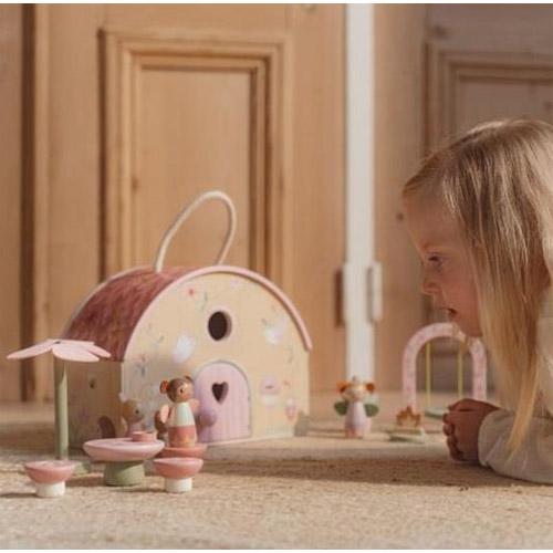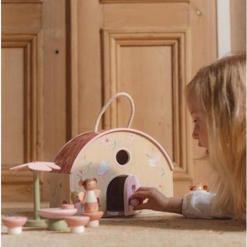 Ce chalet est un cadre idéal pour des moments de jeu sans fin, avec de jolies figurines de fées et un parasol pour que les fées puissent se détendre et profiter de leurs pique-niques.