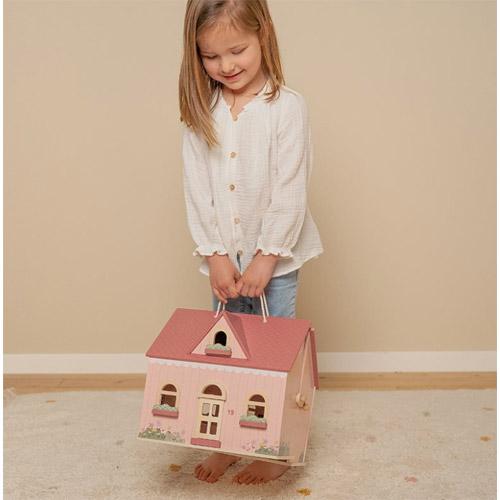 La maison de poupée portable en bois Little Dutch est une maison rose mignonne et confortable avec de beaux détails.