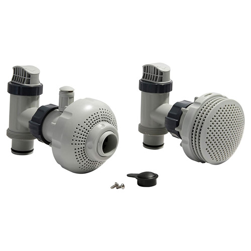 Set de crépines 38 mm avec vannes d'arrêt de la marque Intex, pour renouveler votre set à cause d'usure ou de perte.