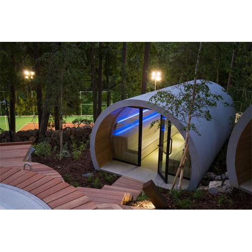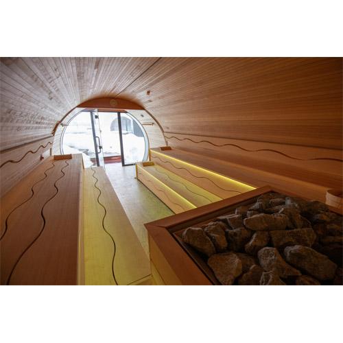 Appuie-têtes, thermomètre et kit sauna.