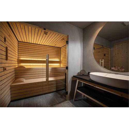 La cabine de sauna favorise la circulation sanguine et la respiration, et est fabriquée en bois durable.