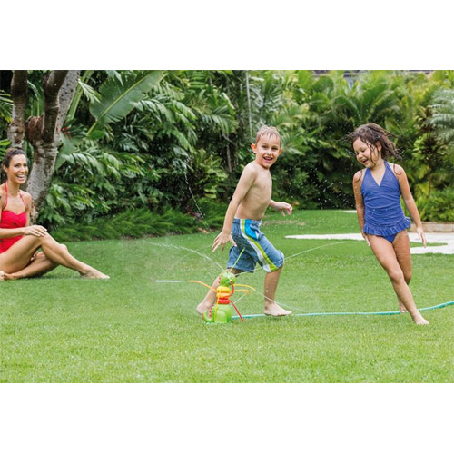 La fontaine en forme de chenille peut facilement être connecter sur le tuyau d'arrosage, pur un plaisir aquatique assuré !