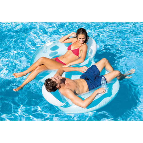 Fauteuil pour deux personnes, le siège est transparent, deux porte-gobelets, prévu d'un support dorsal intégrée.