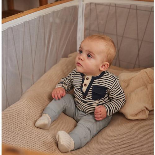 Ce pantalon bleu clair pour garcon est confectionné en coton doux et ectensible, ofrant une grande liberté de mouvement.