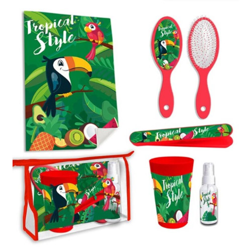Avec le set de toilette Tropical Style vous avez tout ce dont vous avez besoin pour une nuit sur déplacement.