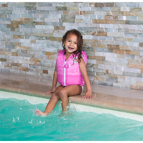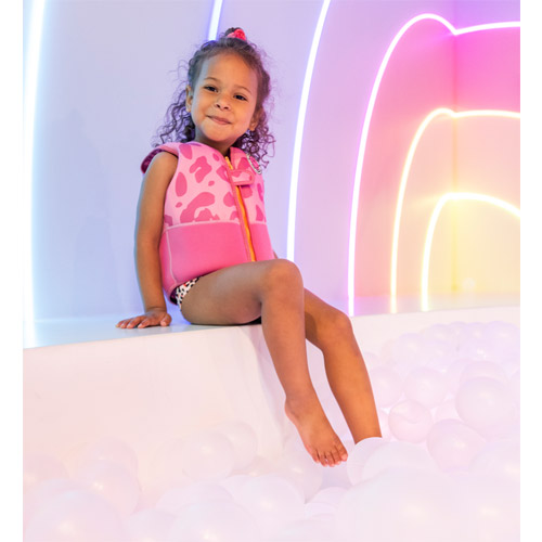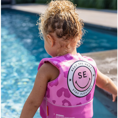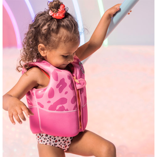 Ce gilet de sauvetage imprimé panthère néon permet à votre enfant d'entrer dans la piscine en toute sécurité.