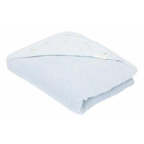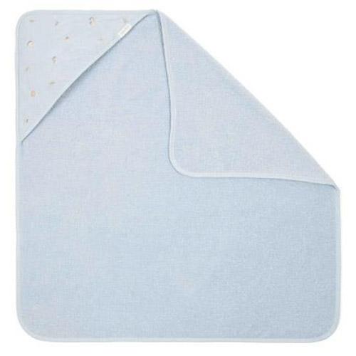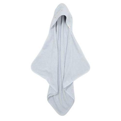 La serviette est d'un beau bleu clair et la capuche est décorée d'adorables champignons brodés de la collection Forest-Friends.