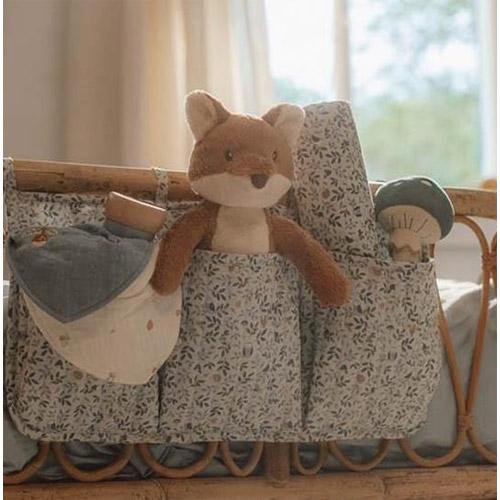 L'emmaillotage présente le motif Forest Adventure, avec une toile bleue sereine décorée de hiboux, d'écureuils, de hérissons et de coléoptères jouant parmi les champignons et les feuilles de la forêt.