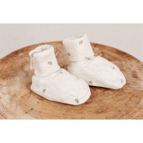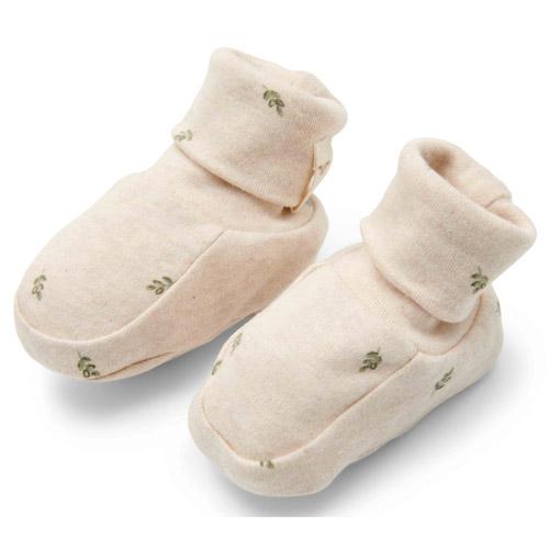 L'imprimé mignon de feuilles vertes sur un fond mélangé couleur sable donne aux chaussons un aspect naturel.