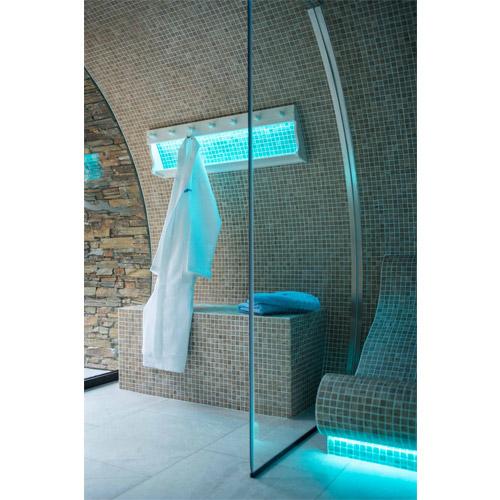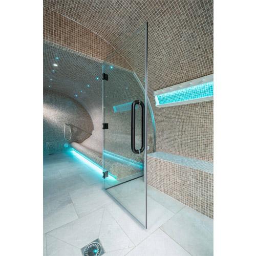Stoomgenerator Omega Pro 20 18 kW, 380V inclusief aroma pomp, geïnstalleerd in de technische ruimte achter de stoomcabine.