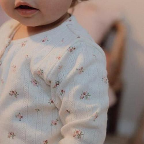 Ontworpen met een fijne pointelle structuur, heeft de onesie een charmante kleine bloemenprint en een fijn gestikt randje langs de sluiting en mouwen.
