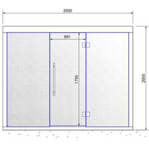 -Front in 8 mm helder gehard glas inclusief deur 691 mm.