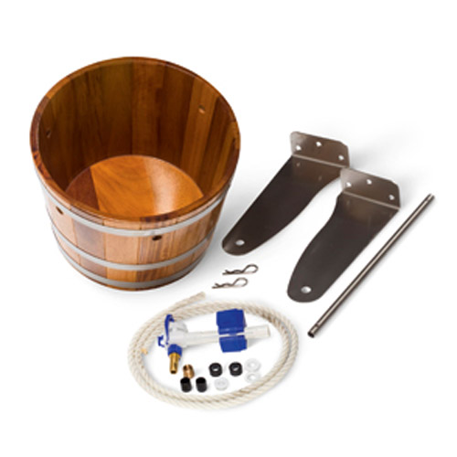 - Watergehalte instelbaar op de vulklep (van 5,5 - 15 liter), grote 29-liter emmer gemaakt van Kambala hout.