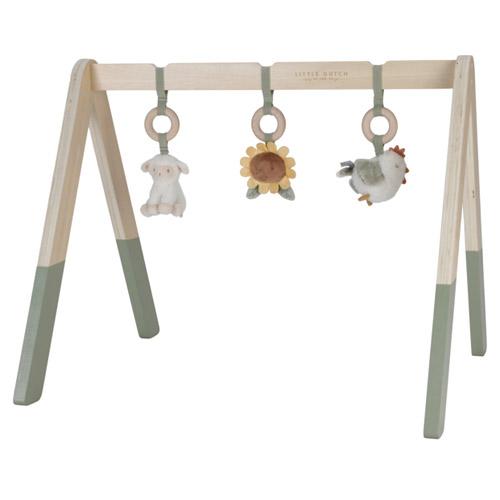 Nieuwsgierige baby's vermaken zich kostelijk met deze houten babygym.